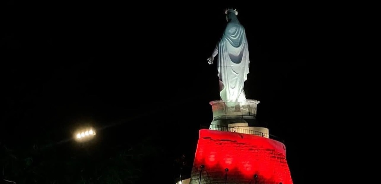 بالصور.. إضاءة تمثل سيدة لبنان في حريصا بألوان العلم اللبناني وعلم الفاتيكان