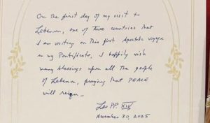 وجّه البابا لاوون الرابع عشر كلمة مكتوبة للّبنانيّين، في السجلّ الذهبي للقصر الجمهوريّ، جاء فيها: