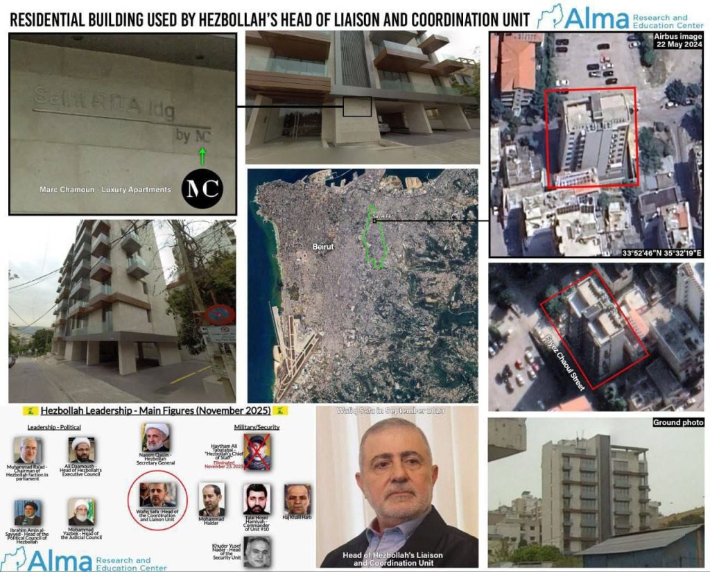 وبحسب المنشورات، تُفيد الرسالة بأن شخصيات بارزة في حزب الله، من بينهم وفيق صفا، رئيس وحدة الارتباط والتنسيق في الحزب، يقيمون أو يزورون المبنى برفقة عناصر مسلّحة، ويقيمون طوقاً أمنياً حوله، ويغلقون الشارع، ويفتشون هويات المارّة. وتدّعي الرسالة أن وجود حزب الله ونشاطه في هذه المنطقة يهددان أمن السكان ويزيدان من احتمال تعرّض المنطقة لضربة إسرائيلية.