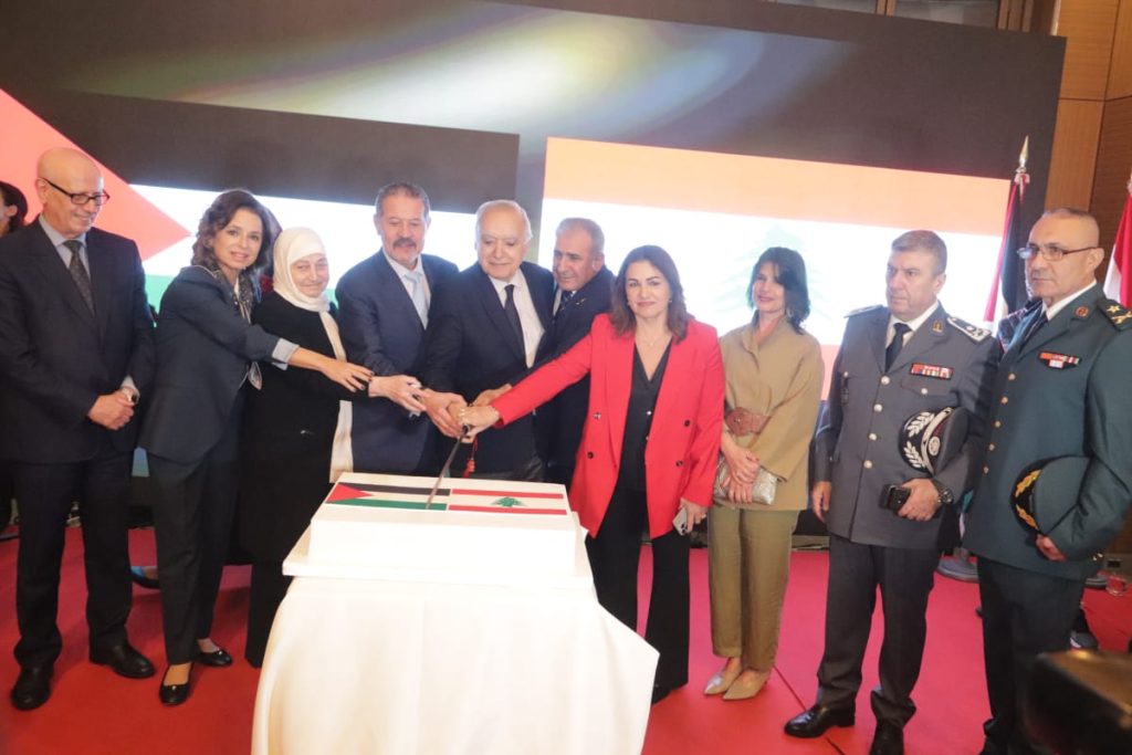 بدأ الاحتفال بالنشيدين اللبناني والفلسطيني ثم تم عرض فيلم قصير حول الابادة الجماعية التي ترتكبها سلطات الاحتلال الاسرائيلي في قطاع غزة. وكانت كلمة للاسعد رحب فيها بالضيوف، شاكراً لهم مشاركتهم، ناقلاً تحيات الرئيس محمود عباس. وأشار إلى أن “القمّة المُشتركة التي عُقدت بين رئيس الجمهورية اللبنانية العماد جوزاف عون ورئيس فلسطين محمود عباس، بتاريخ 21 أيار 2025، محطةً مفصلية، في ترسيخ وتعزيز التعاون بين الدولتين، اللبنانية والفلسطينية، وتعميق الحوار المسؤول، وتثبيت قواعد الثقة، ونجدد التأكيد في هذا الصدد أن شعبنا الفلسطيني في لبنان، هو ضيف موقت إلى حين عودته لوطنه فلسطين، وان مخيمات اللاجئين الفلسطينيين هي تحت سيادة الدولة، ونؤكد بأن وجود سلاح المخيمات خارج اطار الدولة هو اضعاف للبنان وتسليم السلاح للجيش هي خطوة على طريق تأكيد حفظ الأمن والاستقرار في لبنان، كما نشدد على احترام القوانين اللبنانية والالتزام بها وتعزيز التنسيق الأمني بين الجمهورية اللبنانية ودولة فلسطين لضمان الأمن والاستقرار داخل المخيمات ومحيطها، ودعم لبنان في تنفيذ التزاماته الدولية والحفاظ على امنه واستقراره وسيادته على أرضه، ورفض التوطين، وحماية حق العودة لأبناء شَعبِنا، استناداً إلى القرار الدولي 194، وبانتظار ذلك، بما يُعزز الأمن داخل المُخيمات وفي جوارها، ويحفظ العيش الكريم لأبناء شَعبِنا، من خلال تحسين بعض الخدمات، وتمكين أهلنا الصامدين من إعادة ترميم منازلهم المُهدمة أو الآيلة إلى السقوط، وإدخال الأثاث، والأدوات المنزلية، وهي خطوات بدأنا نلمس نتائجها بشكل واضح على طريق معالجة الحقوق الاجتماعية والمعيشية، وحق العمل والتملُّك”.
