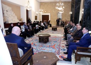 واستمع الرئيس عون الى معاناة أعضاء الوفد الذين شرحوا ظروف اسر أولادهم، وخصوصا من تم اسرهم بعد انتهاء الاعمال العدائية، والمأساة اليومية التي يواجهونها في ظل غياب احبائهم. واعربوا عن وقوفهم الى جانب ما يقوم به رئيس الجمهورية، شاكرين له “الجهود التي يبذلها لكشف مصير الاسرى والمطالبة بعودتهم”.